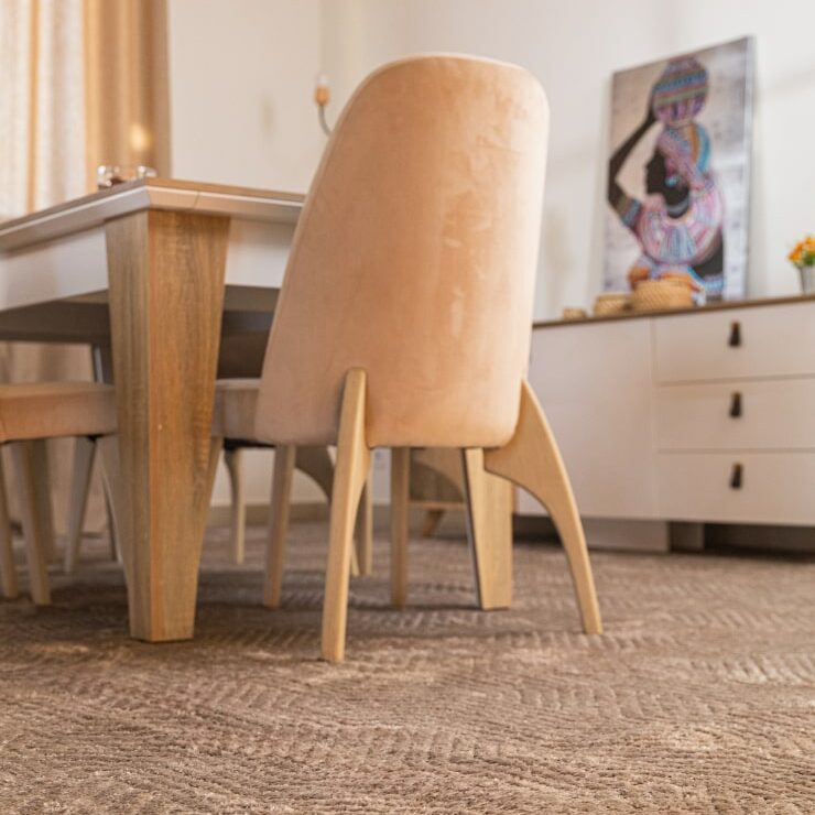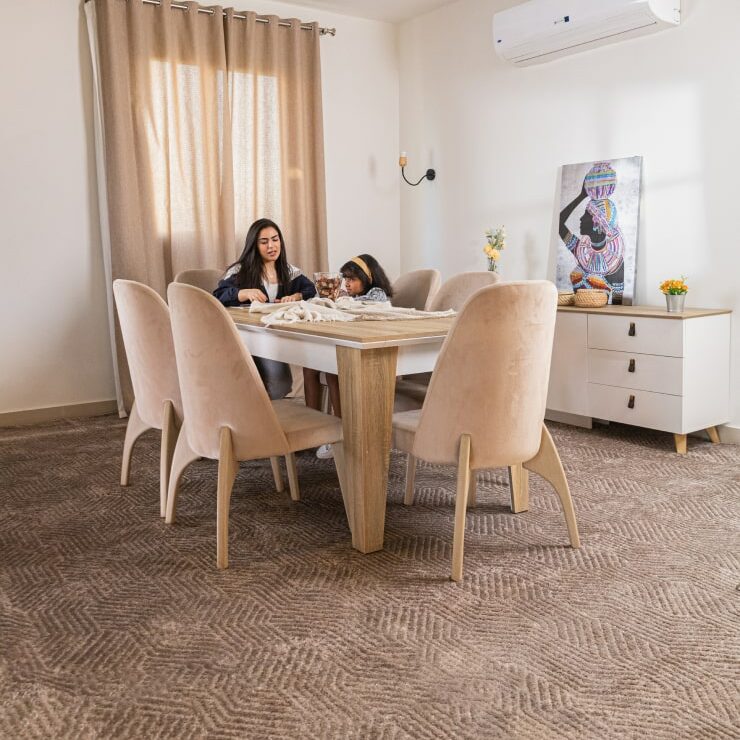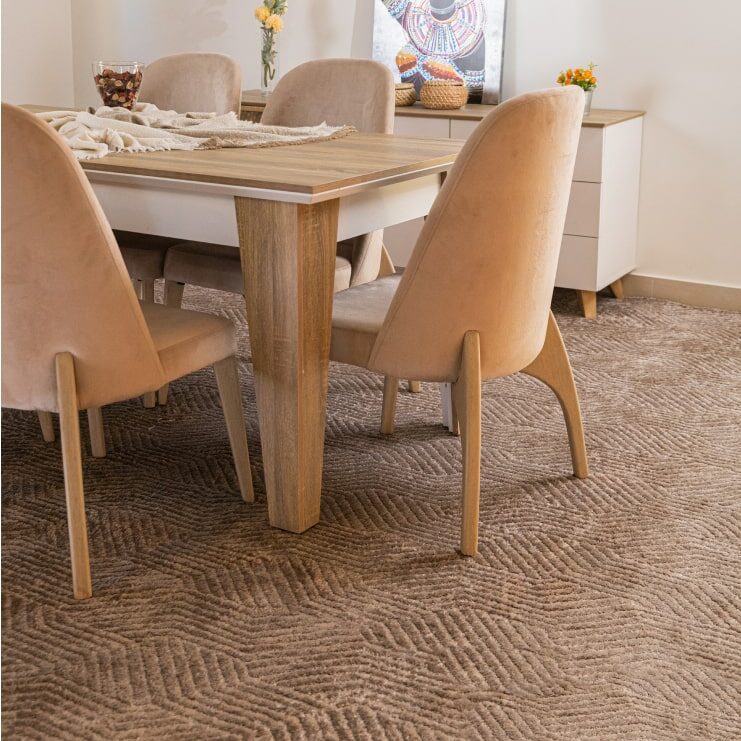 أنسب اختيار لغرفة السفرة مع موكيت ماك بعرض 4م بإمكانية تقطيعه بسهولة حسب المساحة المطلوبة، مما يجعله اختيار مثالي لتغطية أرض غرف الطعام بالكامل.